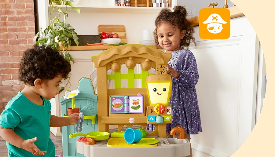 ごっこ遊びをすることで、お子さんは楽しくて経験したことのない想像の世界を冒険することができます。作物を収穫する農家になったり、ぬいぐるみのお世話をする獣医になったり、世界的なレースに勝つレーシングカーのドライバーになったり。可能性は無限です!