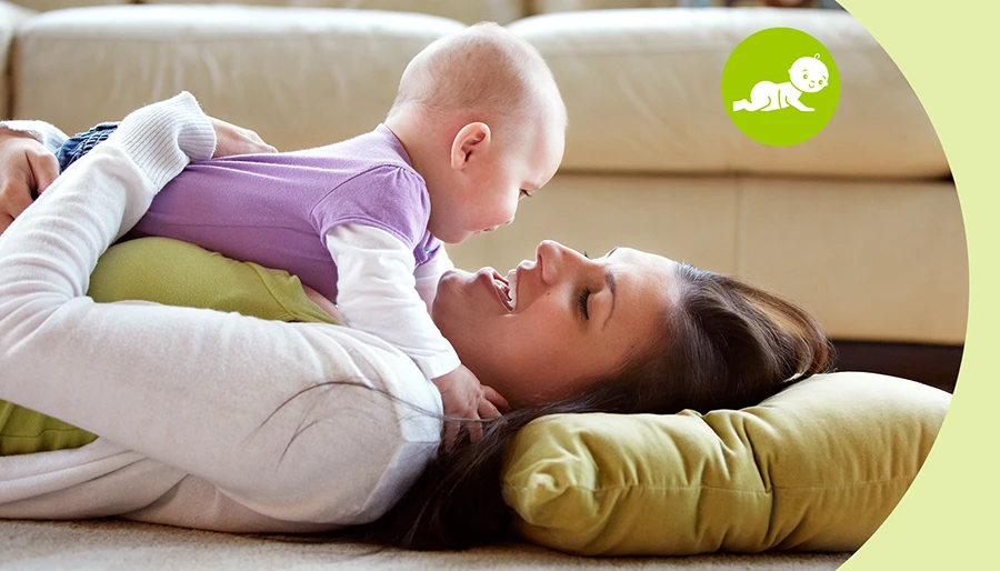 赤ちゃんと同じフロアに寝転がり、話しかけたり、歌ったり、目を見つめたりしましょう。あなたが近くにいることで、赤ちゃんは安心し、やる気が出てきます。