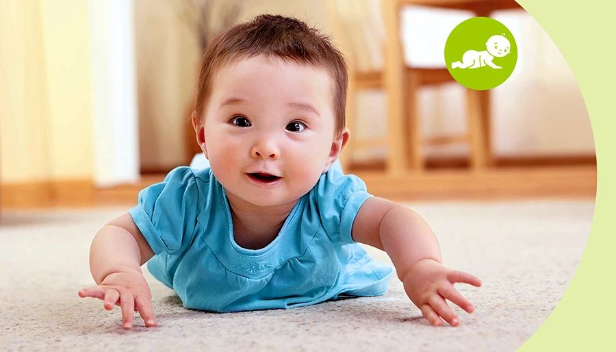 - 生後6ヵ月頃になると体力がつき、タミータイムの時間がさらに長くなるかもしれません。転がったり、よりアクティブに動き回ると思うので、十分なスペースを確保してあげてください!