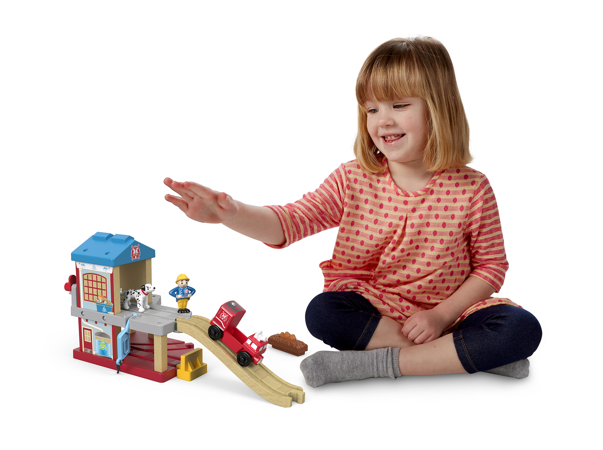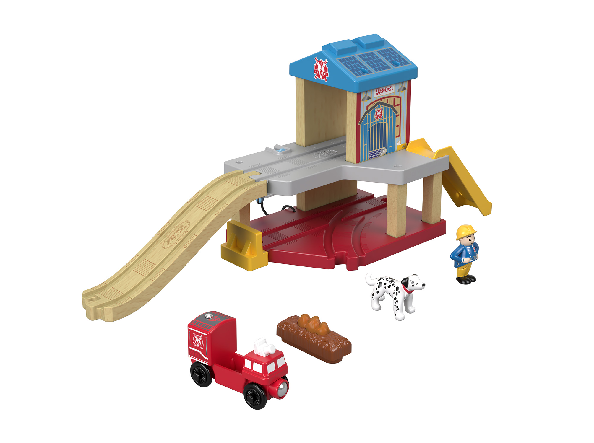 いじわる貨車・いたずら貨車とチャーリーはクレーンのオペレーターと一緒に大忙しで働ているプレイセット。クレーンを動かして荷物を上げ下ろしするのを手伝ってあげよう!※レールアダプター2本付き