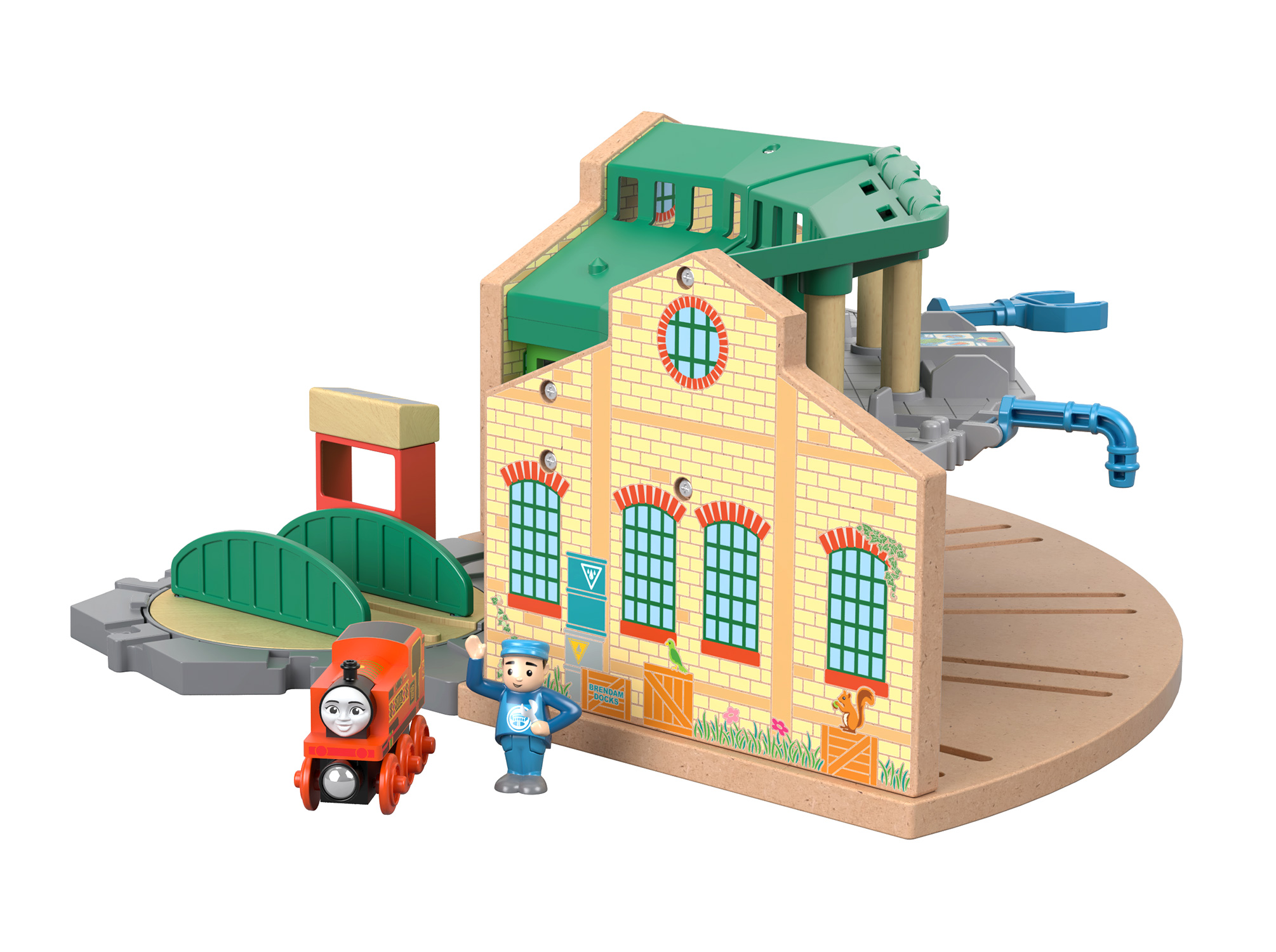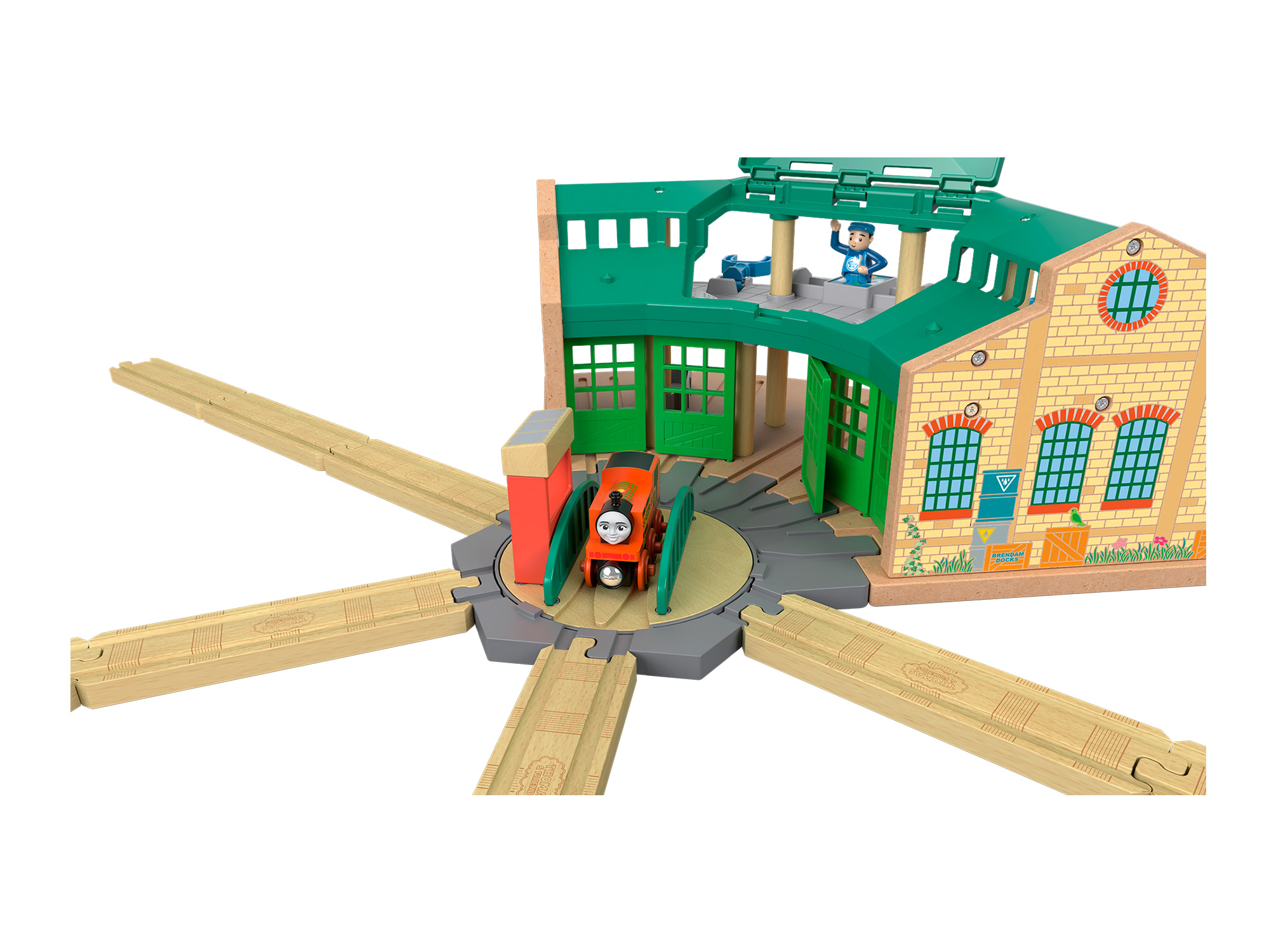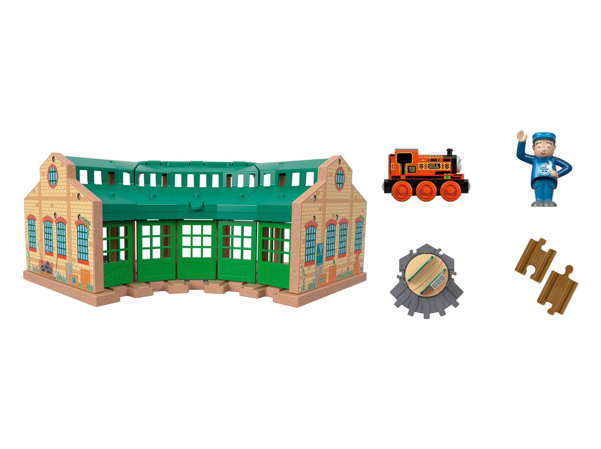 いじわる貨車・いたずら貨車とチャーリーはクレーンのオペレーターと一緒に大忙しで働ているプレイセット。クレーンを動かして荷物を上げ下ろしするのを手伝ってあげよう!※レールアダプター2本付き