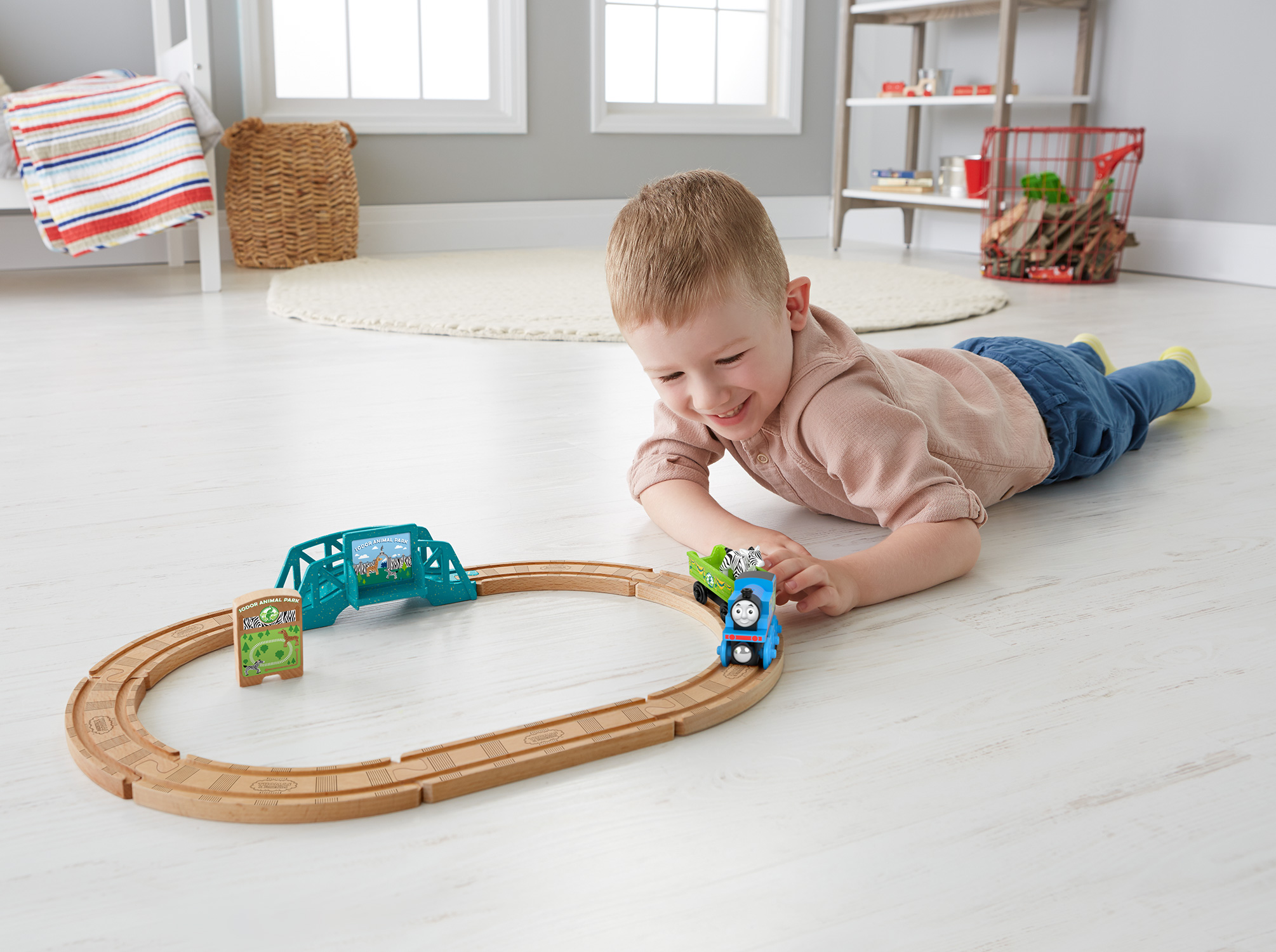 いじわる貨車・いたずら貨車とチャーリーはクレーンのオペレーターと一緒に大忙しで働ているプレイセット。クレーンを動かして荷物を上げ下ろしするのを手伝ってあげよう!※レールアダプター2本付き