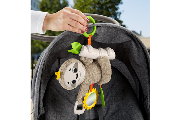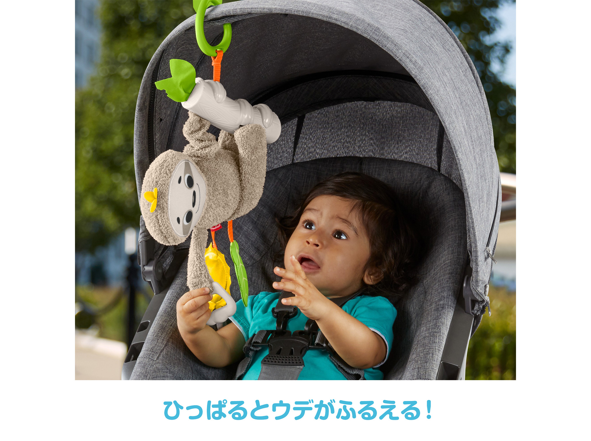 ベビーカーに簡単に取り付けができるので、外出先でも活躍。木にぶらさがってゆらゆらゆれるかわいいナマケモノが赤ちゃんをやさしくあやしてくれます。