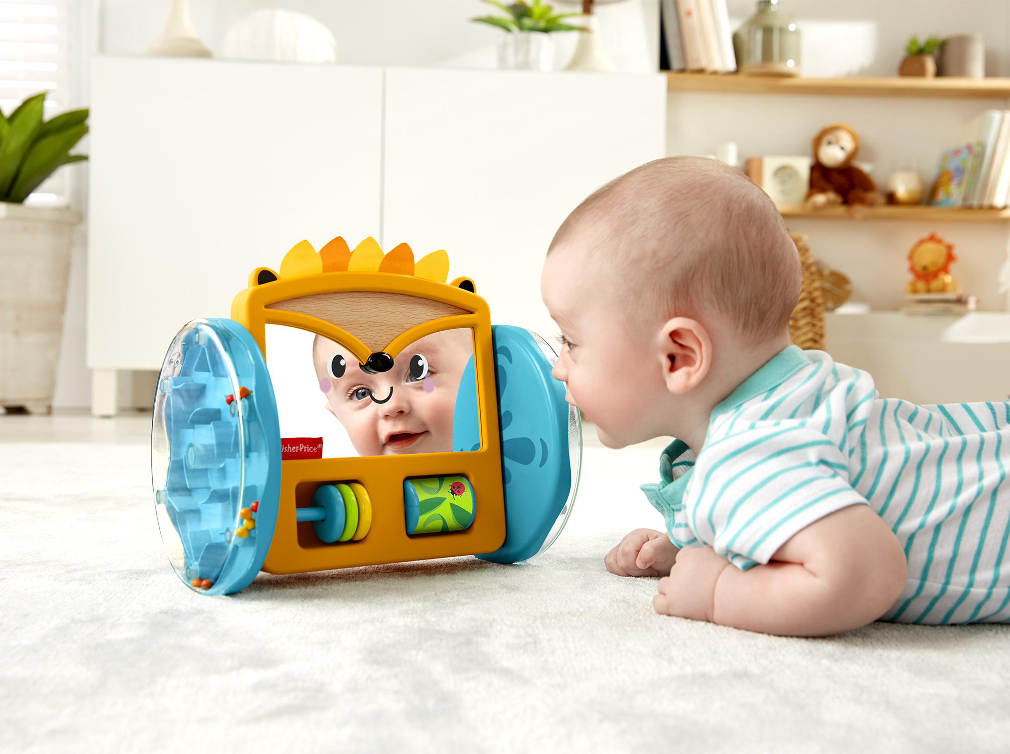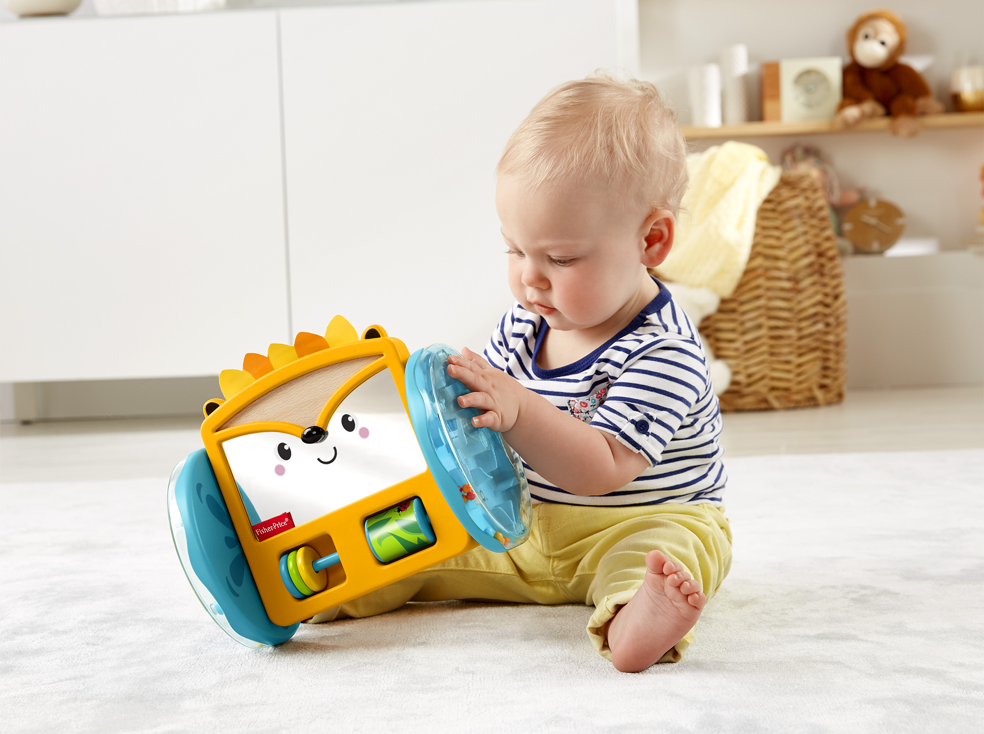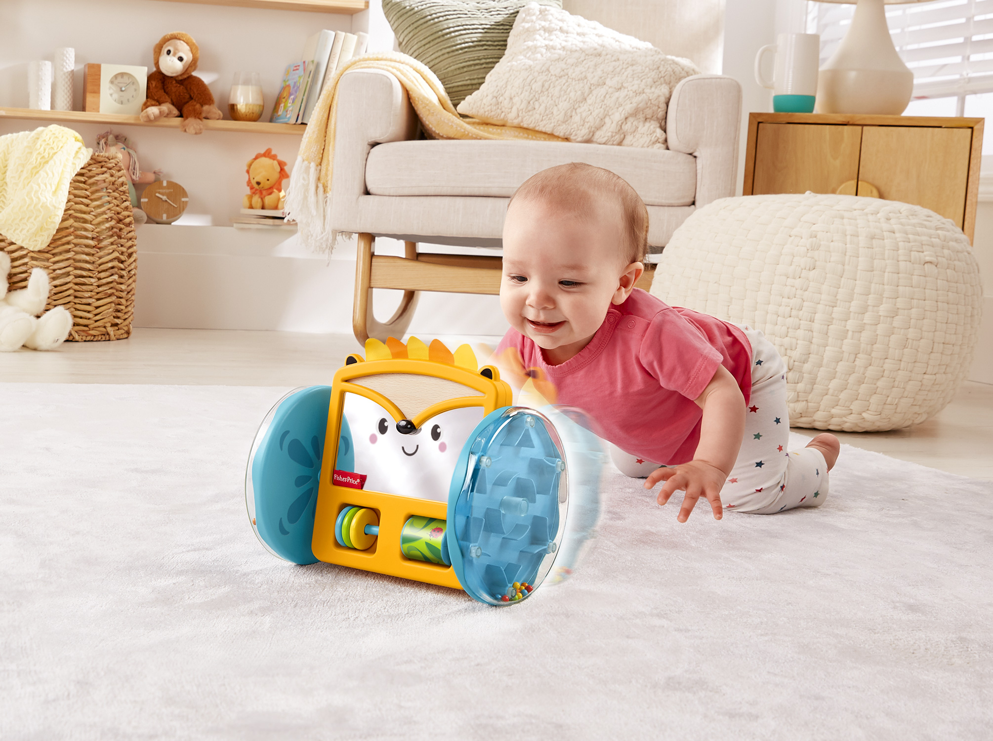 はいはい時期はハリネズミと追いかけっこして遊ぼう。大きな車輪でぐんぐん進み、運動能力の発達も促します。