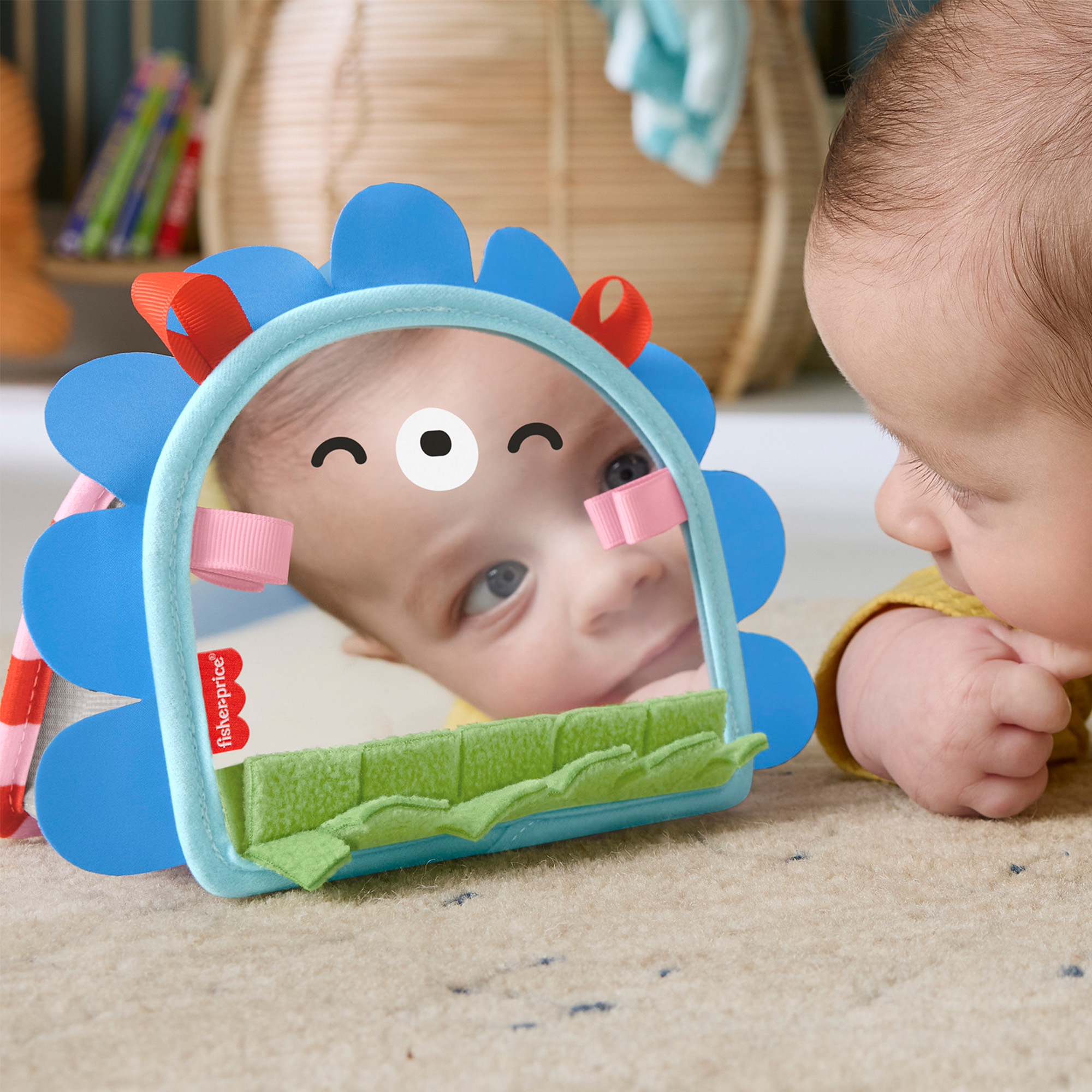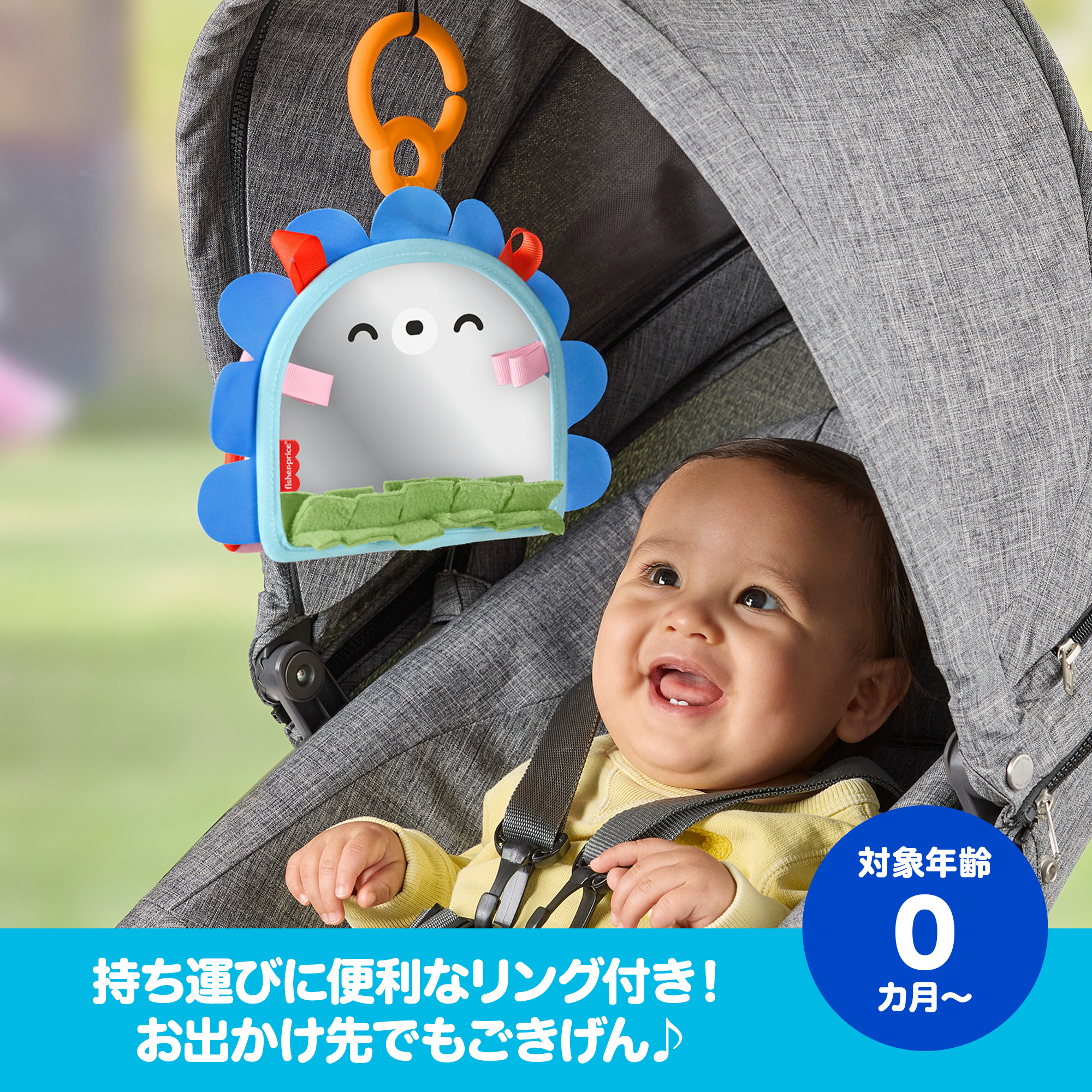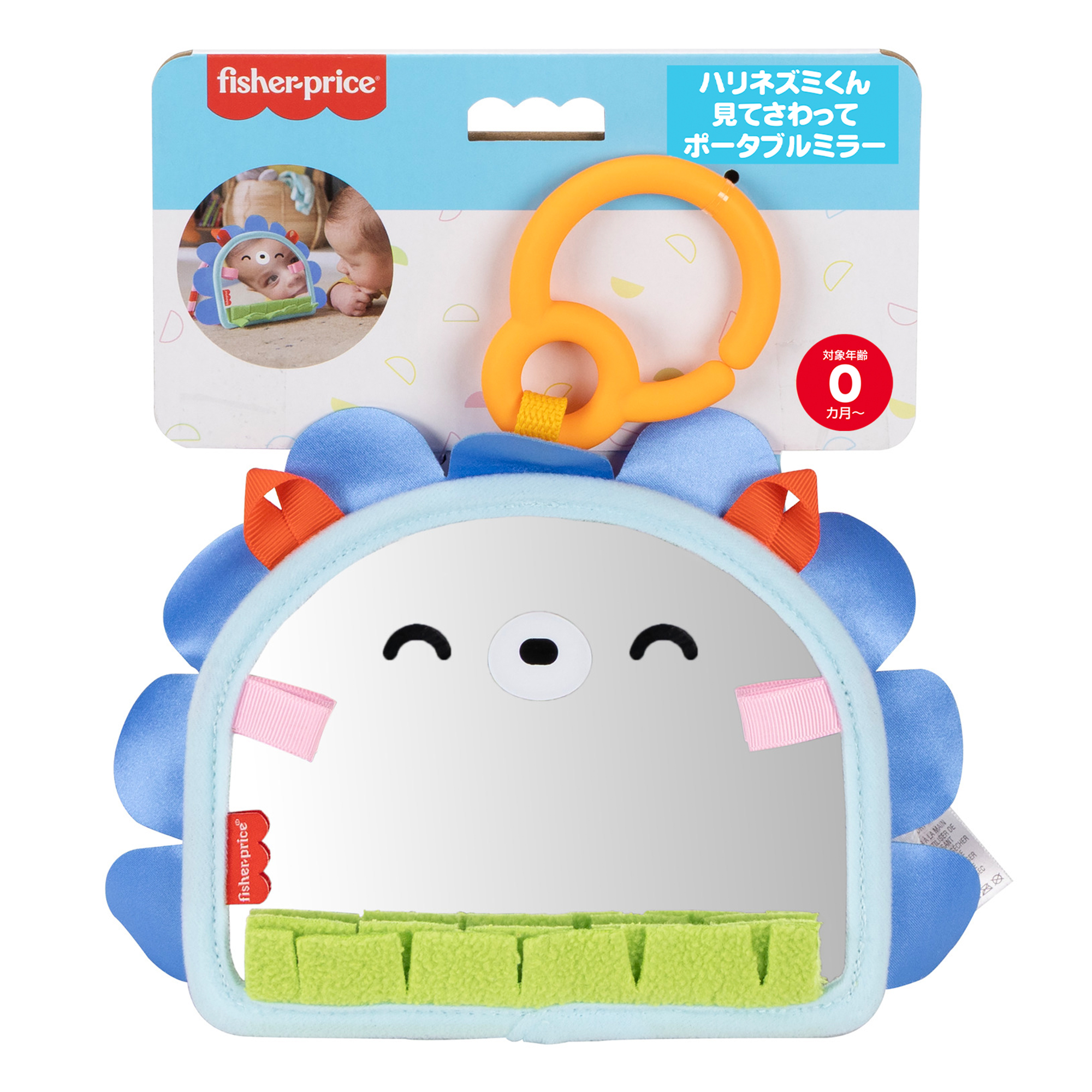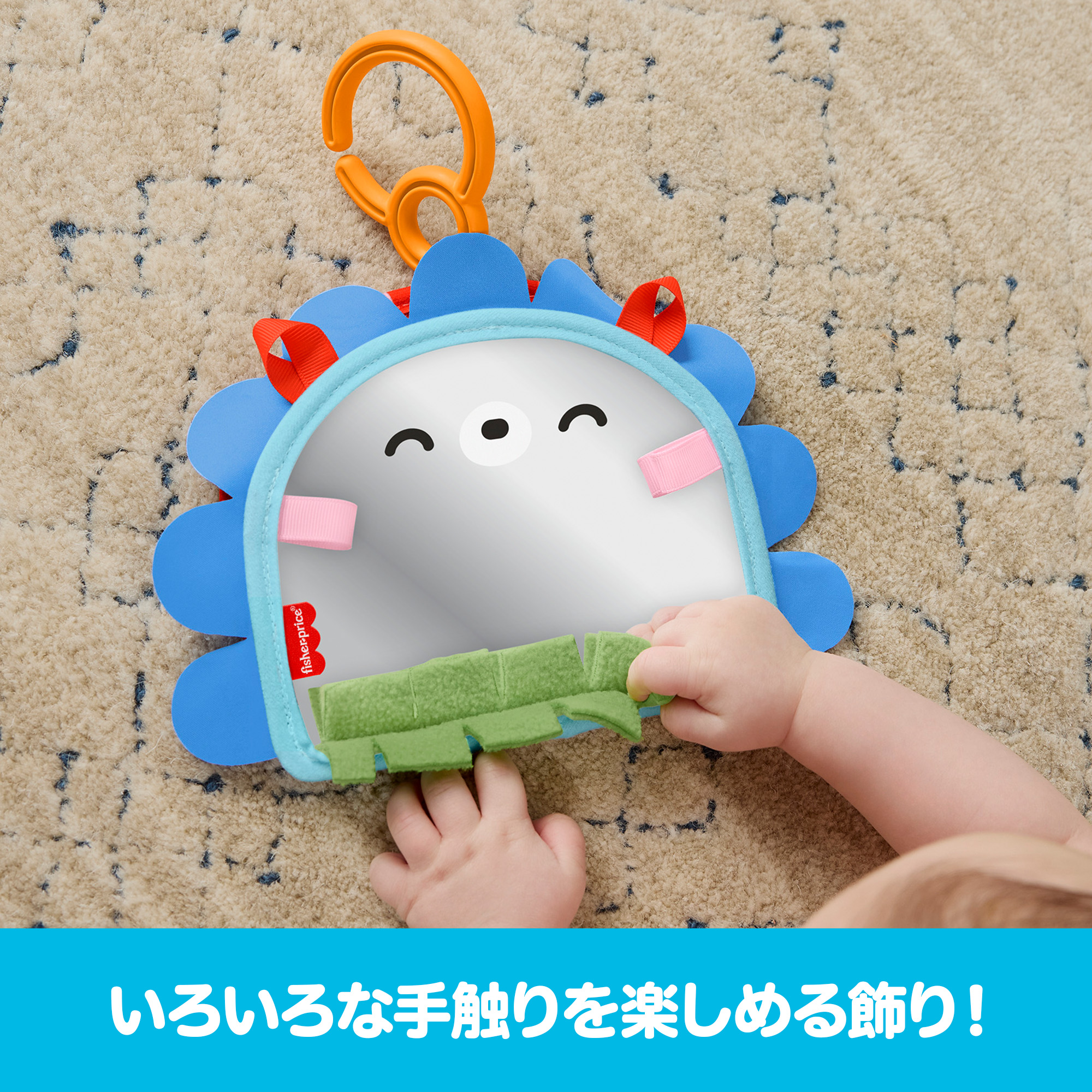 フィッシャープライスの「ハリネズミくん 見てさわって ポータブルミラー」は、遊びを通じて赤ちゃんの心身の発達を促します。おうちで遊ぶだけでなく、おでかけ用のおもちゃにもぴったりです。かわいらしいハリネズミの本体は、自分が見えるかがみと、いろいろな手ざわりを楽しめる飾り付き。また、白黒のハイコントラストのパネルは、赤ちゃんの視覚を刺激して発達を助けます。かがみは平らに折りたたんだり、広げて立てたりできるため、はらばいの赤ちゃんも興味津々で楽しく遊べます。便利な吊り下げパーツ付きなので、お出かけのときにベビーカーやバッグにかがみを取り付けることもできます。色やデザインは実物と異なる場合があります。