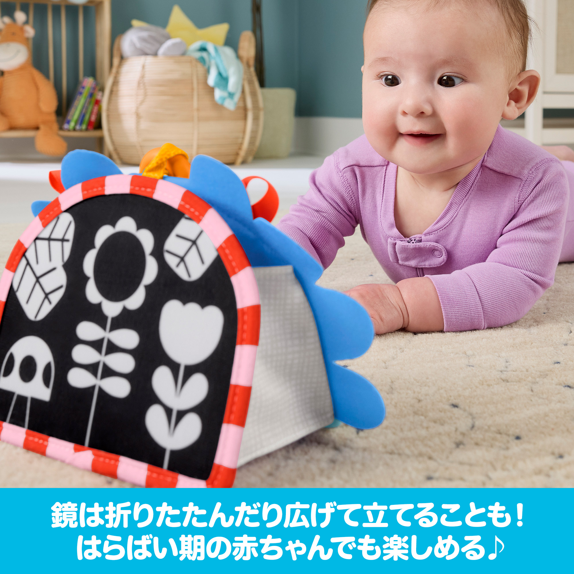 はらばい期から大きくなっても遊べる立てかけミラー!