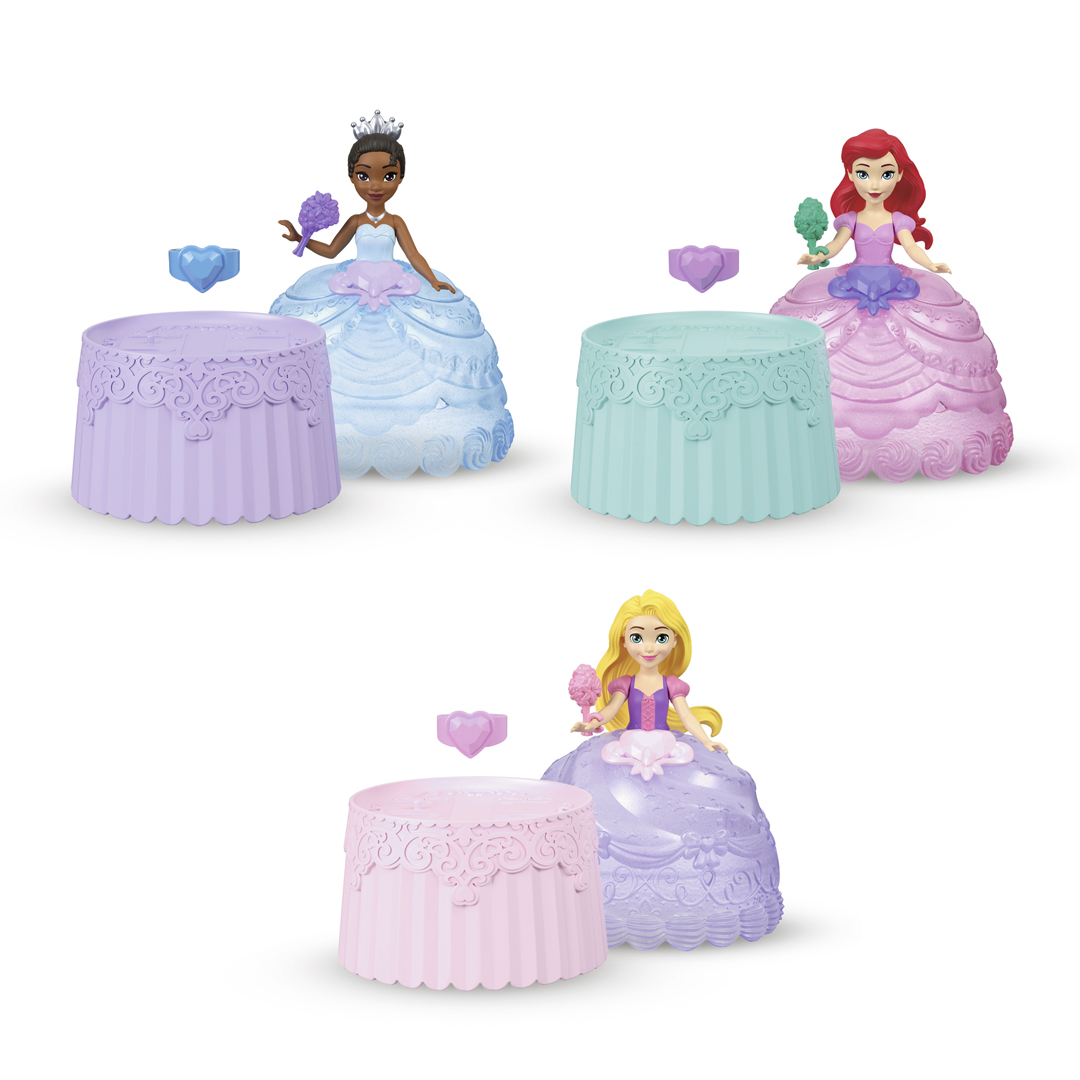 キッズが夢中になること間違いなしの、季節限定のギフトにぴったりなアイテム!バレンタインデーをテーマにした、キラキラのカップケーキ型に入ったディズニープリンセスのミニドール・ブラインドアソートが登場!各カップケーキには、ミニドール1体、アクセサリー2個、子ども用のリングなど、5つのサプライズが入っています。さらに、ラメ入りのカップケーキの上部分はドールのスカートに、下部分はテーブルとして使えるなど、ストーリー遊びがもっと楽しく広がります!