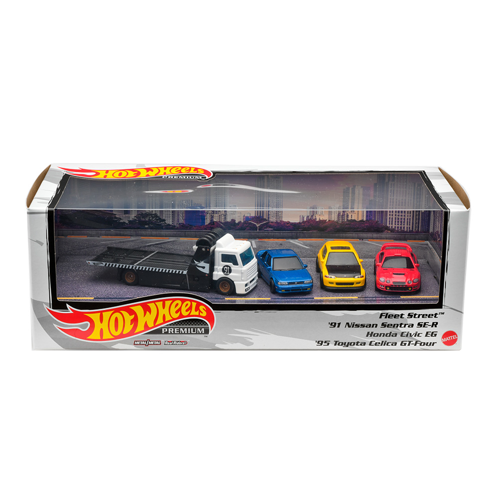プレミアム コレクターセット・プレミアムボックスカーカルチャーをテーマとしたディスプレイセット!1台の積載車と3台のフルダイキャストカーがセットになっています。