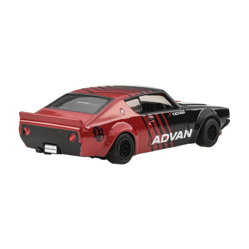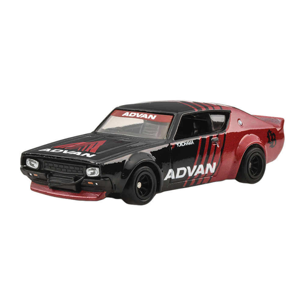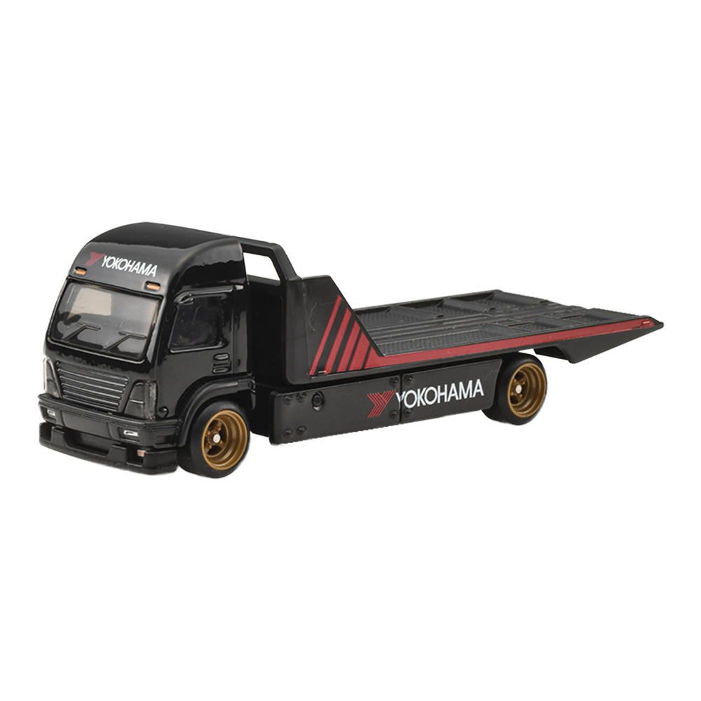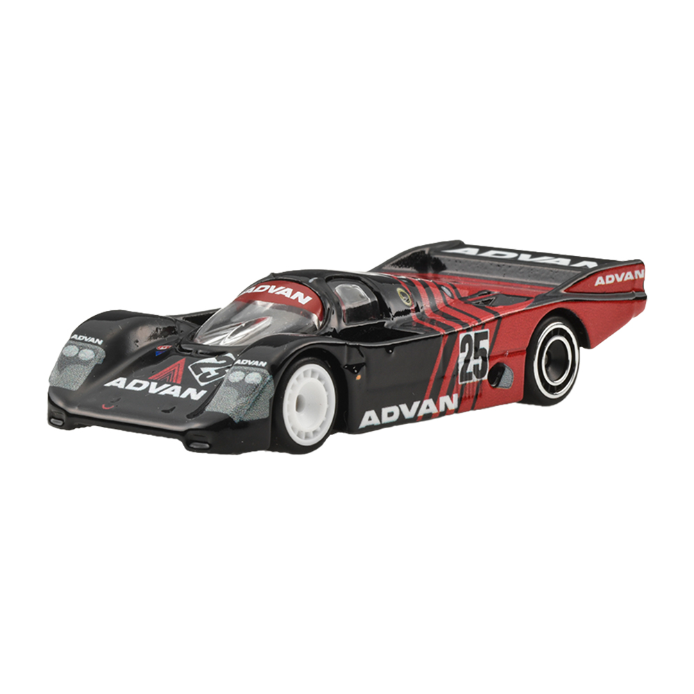 1917年創業の横浜ゴムが、1978年に乗用車用のスポーツタイヤ・ブランドとして立ち上げたのが『ADVAN(アドバン)』。1960年代中盤からモータースポーツ用タイヤの開発・製造を行っているが、そこで培われたノウハウをフィードバックした製品群が『ADVAN』ブランドからリリースされている。また『ADVAN』ブランドとして数々のレーシングチームやドライバーなどをスポンサードしてきたこともあり、ブラック基調のボディに赤のストライプと「A」モチーフにしたグラフィックスをまとったマシーンがサーキットを席巻。今回は、実在したグループC規格のレーシングマシーンをモチーフにしたポルシェ962の他、現代を生きるオールドスクールなリバティーウォークのスカイラインGT-R、2代目トヨタMR2(SW20型)にTRD製のワイドボディキットを装着したTRD 2000GTの3台に加えて、ホットウィールオリジナルデザインの車両運搬車、エアロ・リフトの4台をそれぞれお馴染みの通称、『ADVANカラー』で仕上げた4台が揃い踏みとなる。各車の細密な灯火類の印刷、ホイールのカラーリングなども注目のポイントだ。