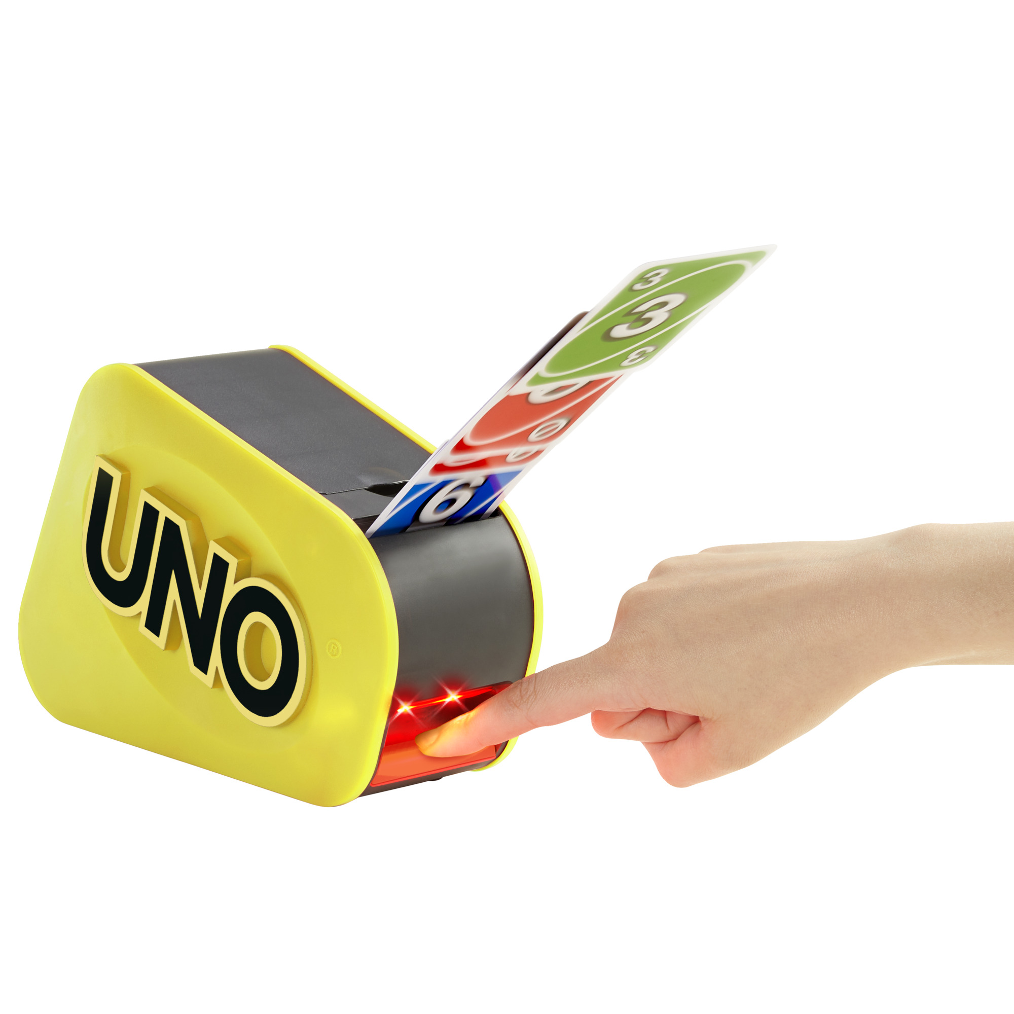 このエディションは、カードを空高く発射する洗練されたデザインのカードランチャーが特徴です!ボタンを押すたびにクールな光と効果音が速く点滅し、サスペンスを盛り上げます。いつカードが飛び出すか、期待に胸が高鳴ります!アタックカードが出たら要注意!最後の1枚になったら、""UNO!""と叫ぶのを忘れずに。