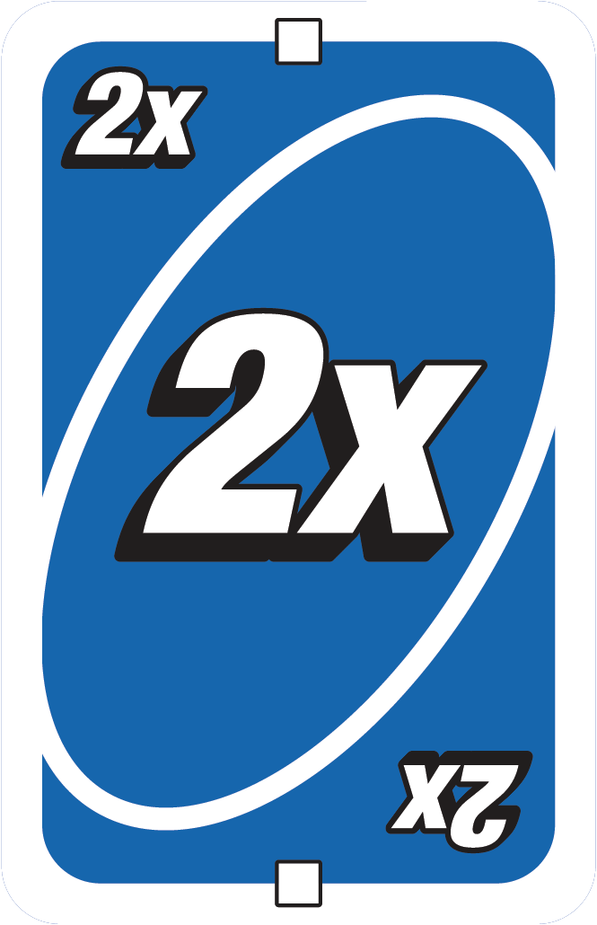 このカードが出されたら、次の人はアタックボタンを2回押さなければなりません。カードは捨てられず、そのまた次の人に順番が移ります。場のカードと同じ色、同じ種類であれば使えます。