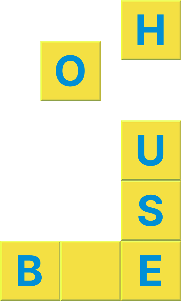 - 次のプレイヤーは、ボードにタイルをヨコかタテに並べて別の単語をつくります。