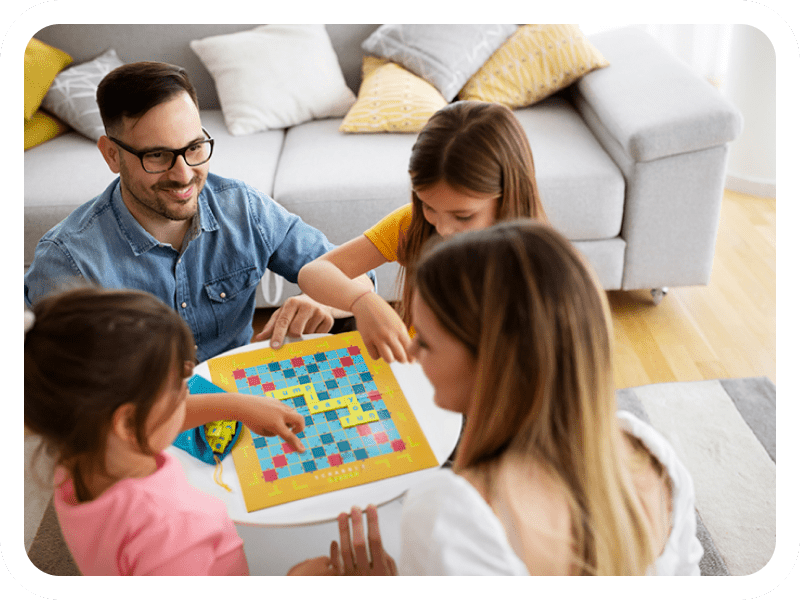 上級者向けには、単語のスペル順にタイルを並べるというルールを追加しましょう。単語の最初の文字がボードに置かれるまで、2番目の文字は並べられません。